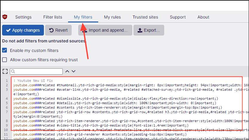 Another method to restore the old YouTube layout is to add a filter to uBlock Origin.