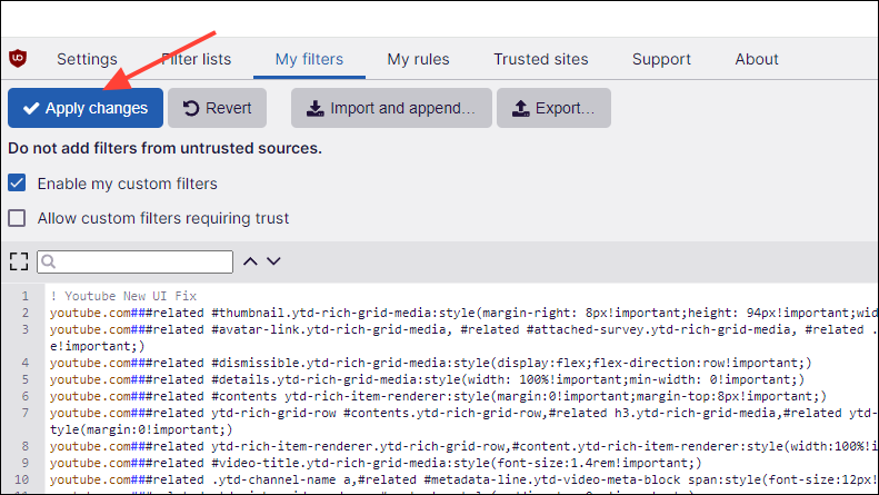 - Finally, click on the 'Apply Changes' button and your YouTube page should have its old layout back again.