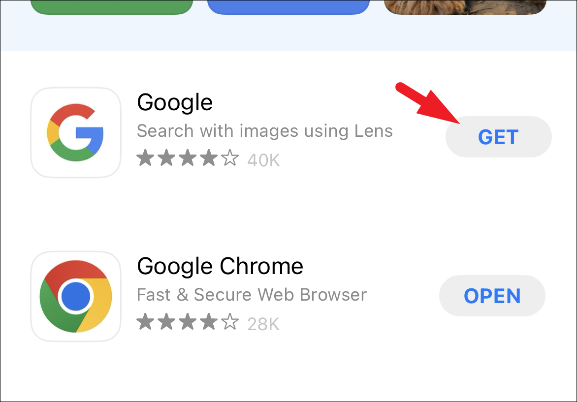 If you think using Safari to reverse search an image is too complicated of a process, you can simply download the Google App from the App Store and use the reverse image search feature without any hassle.