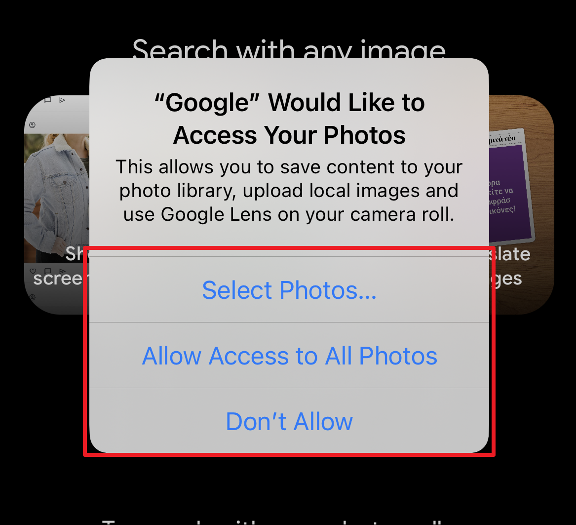 Then, to give access to selected albums, tap on the ‘Select Photos’ option. Otherwise, tap on the ‘Allow Access to All Photos’ option.