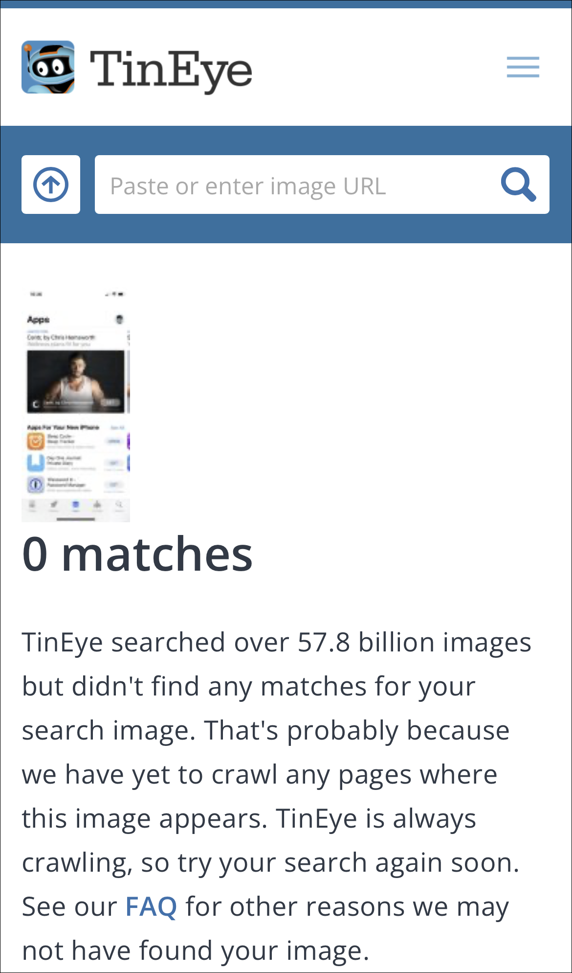 Once uploaded, TinEye will display the results on your screen.