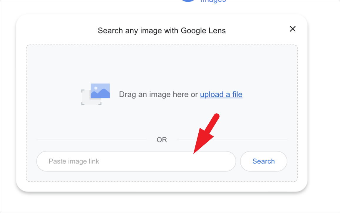 You can also paste a link to the picture if it is stored on the Internet or in your personal cloud storage. Then, tap on the ‘Search’ option.