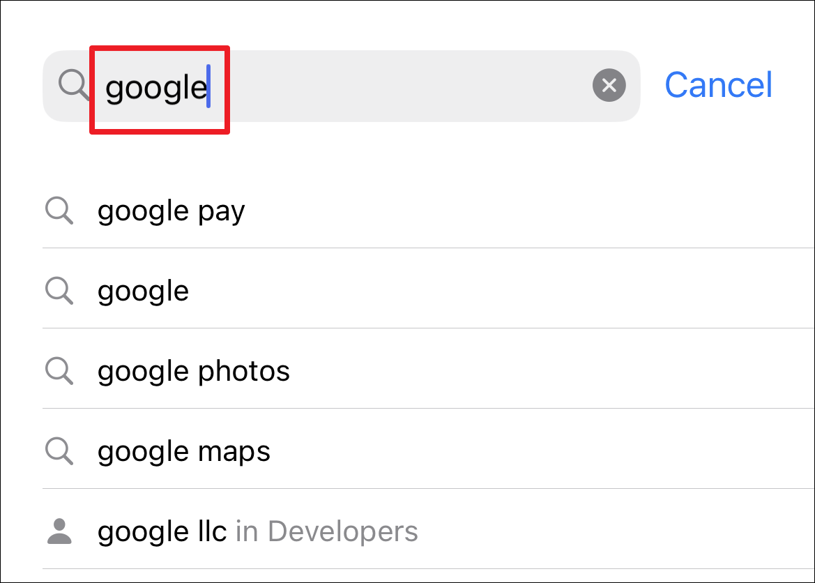 After that, tap on the search bar present at the top of the page and type Google. Next. tap on the ‘Search’ button from the bottom right corner of the on-screen keyboard.