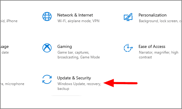 Click on ‘Update & Security’ in the settings window.
