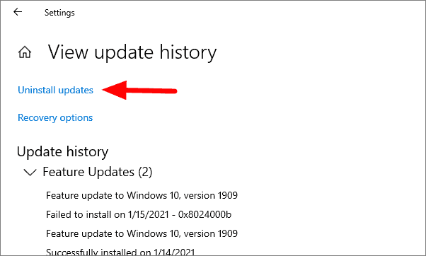 You will now see the recent update history, thus helping you find out which update is causing the trouble. Click on ‘Uninstall updates’ option at the top.