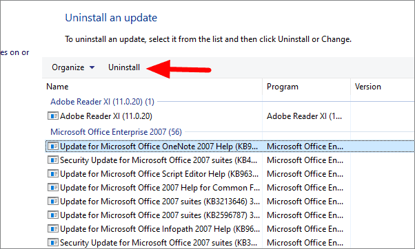 Select the update you want to remove and then click on ‘Uninstall’.