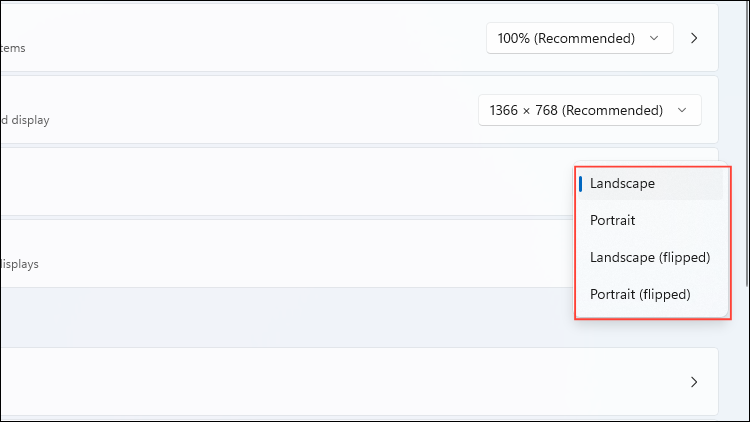 Windows 11 also supports convenient keyboard shortcuts for quickly changing screen orientation without navigating through settings.