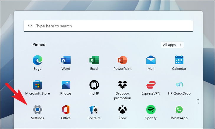 Step 1: Open the Start Menu and click on the Settings icon in the pinned apps section. Alternatively, you can type "Settings" into the search bar.