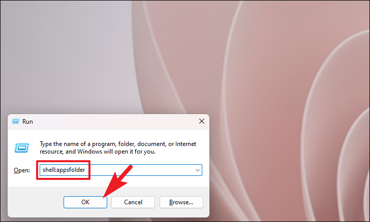 Step 2: Open the Applications folder by pressing Windows+R, typing shell:appsfolder, and pressing Enter. This folder contains shortcuts to all installed applications.