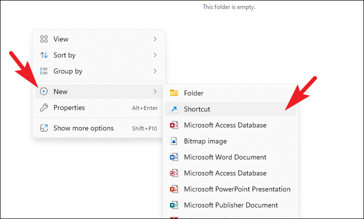 Step 2: In the Startup folder, right-click on an empty area, hover over New, and select Shortcut from the context menu. This will open the Create Shortcut wizard.