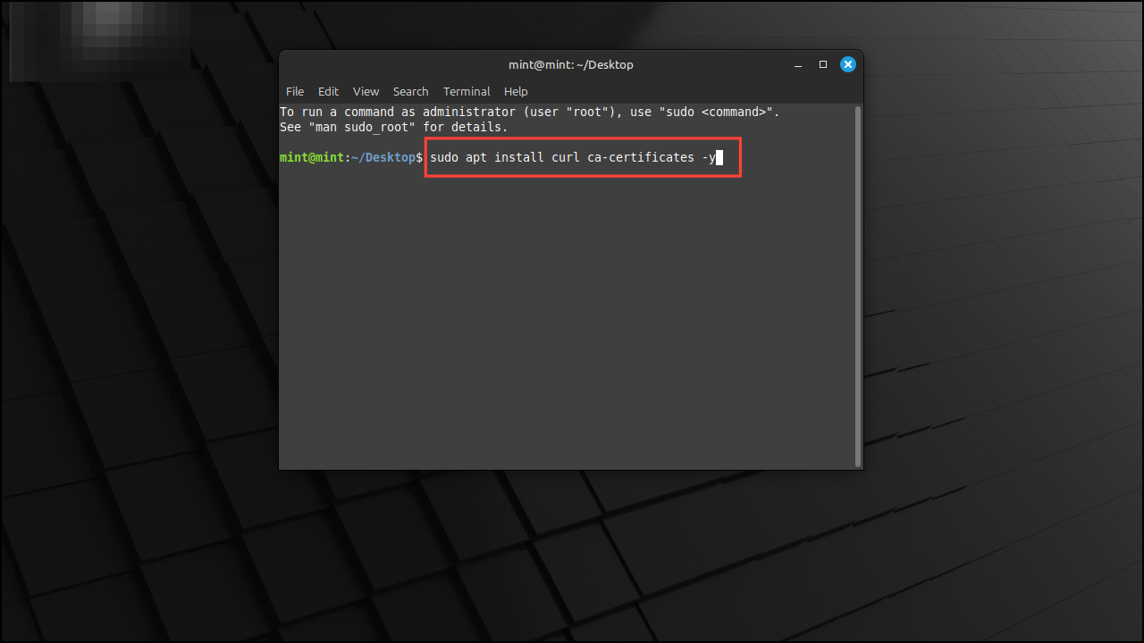 sudo apt install curl ca-certificates -y. Then press Enter to install the required dependencies.