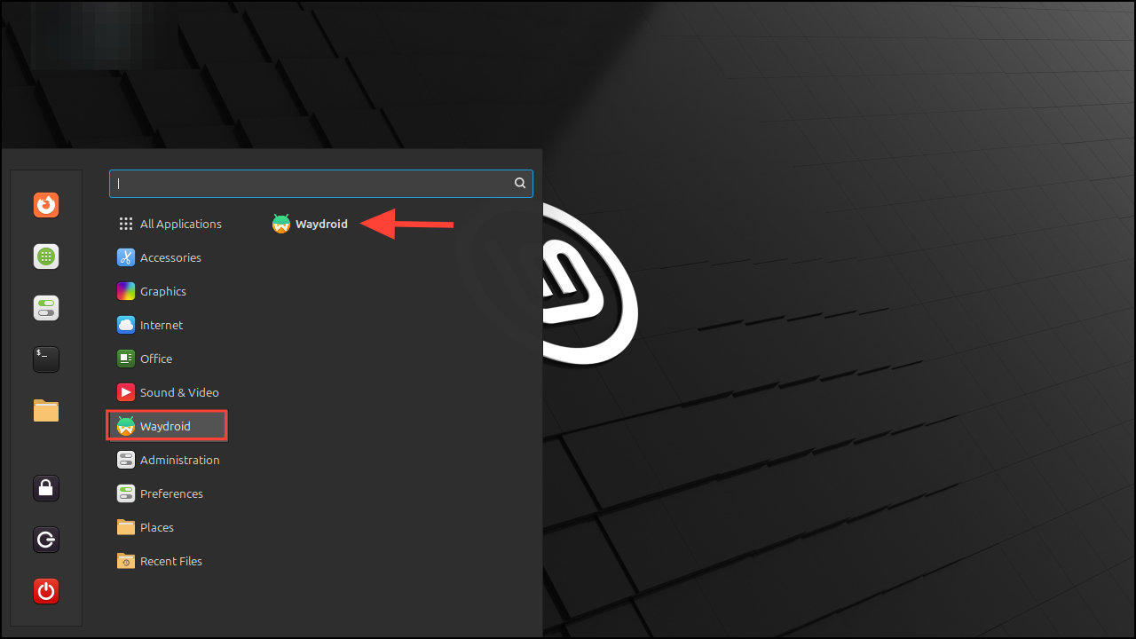 - Once WayDroid is installed on your system, launch it from the menu.