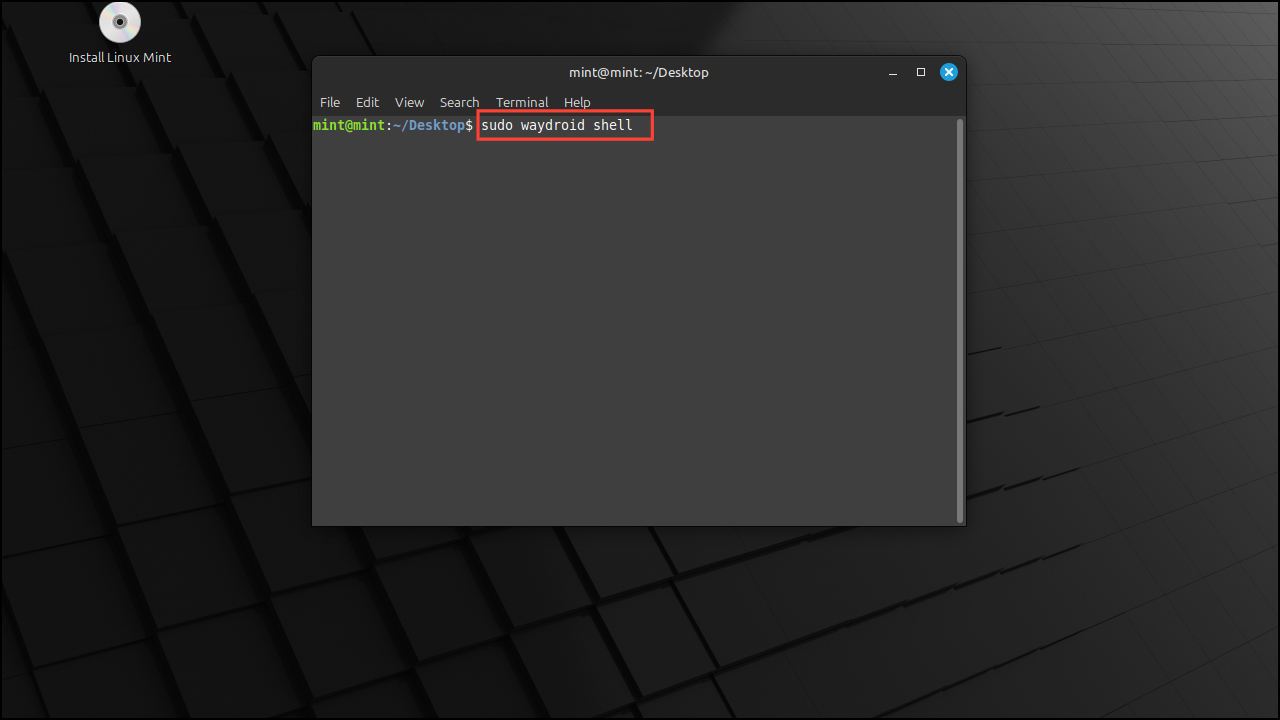 sudo waydroid shellbefore pressing Enter.