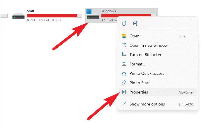 - Right-click on the drive you want to check and select 'Properties' from the context menu.
