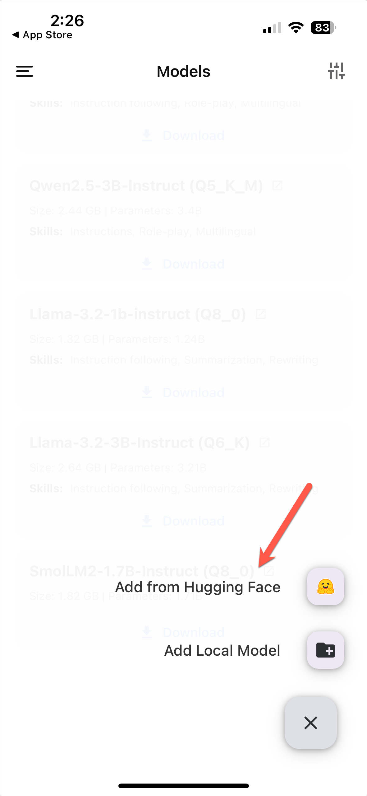 - Next, tap on 'Add from Hugging Face'.
