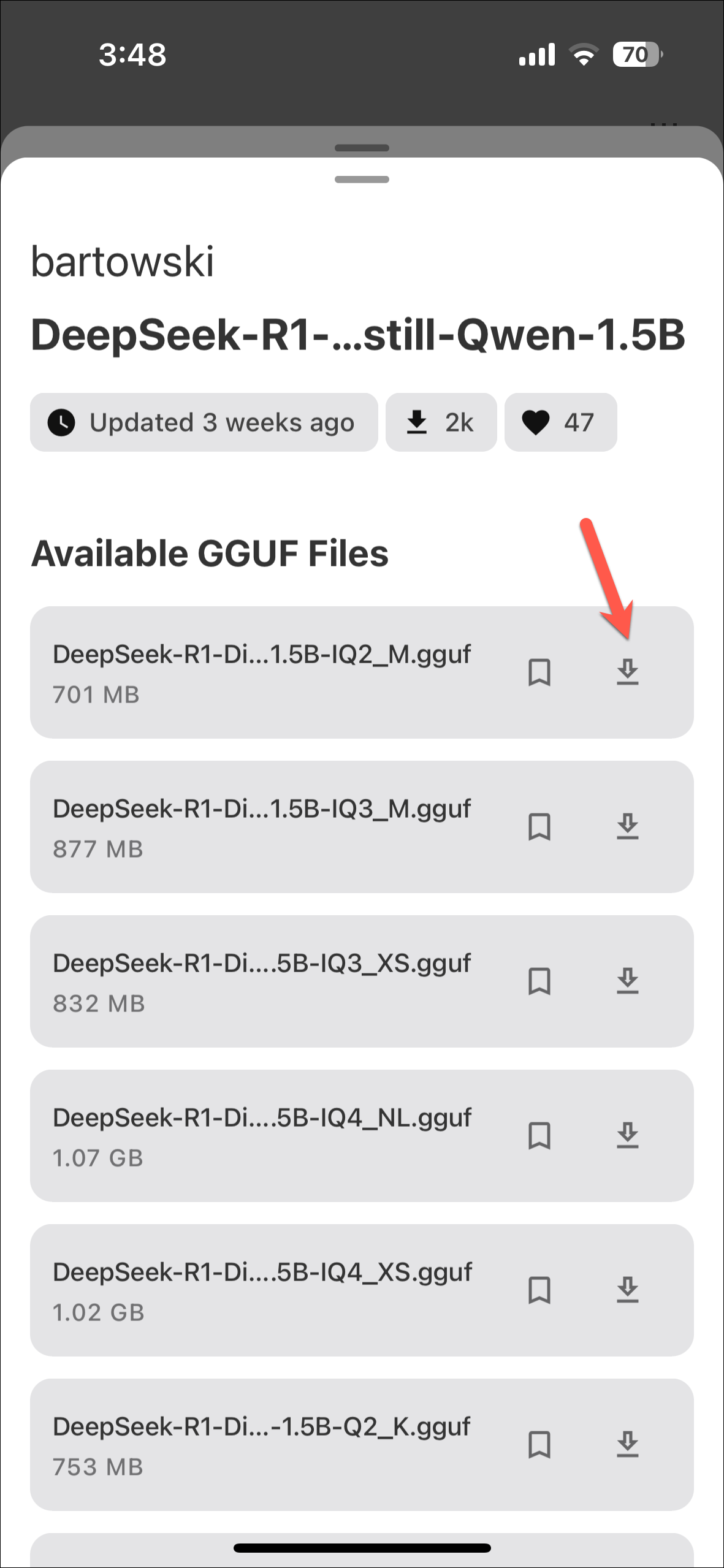 - Then, tap on the download icon on one of the available GGU files.