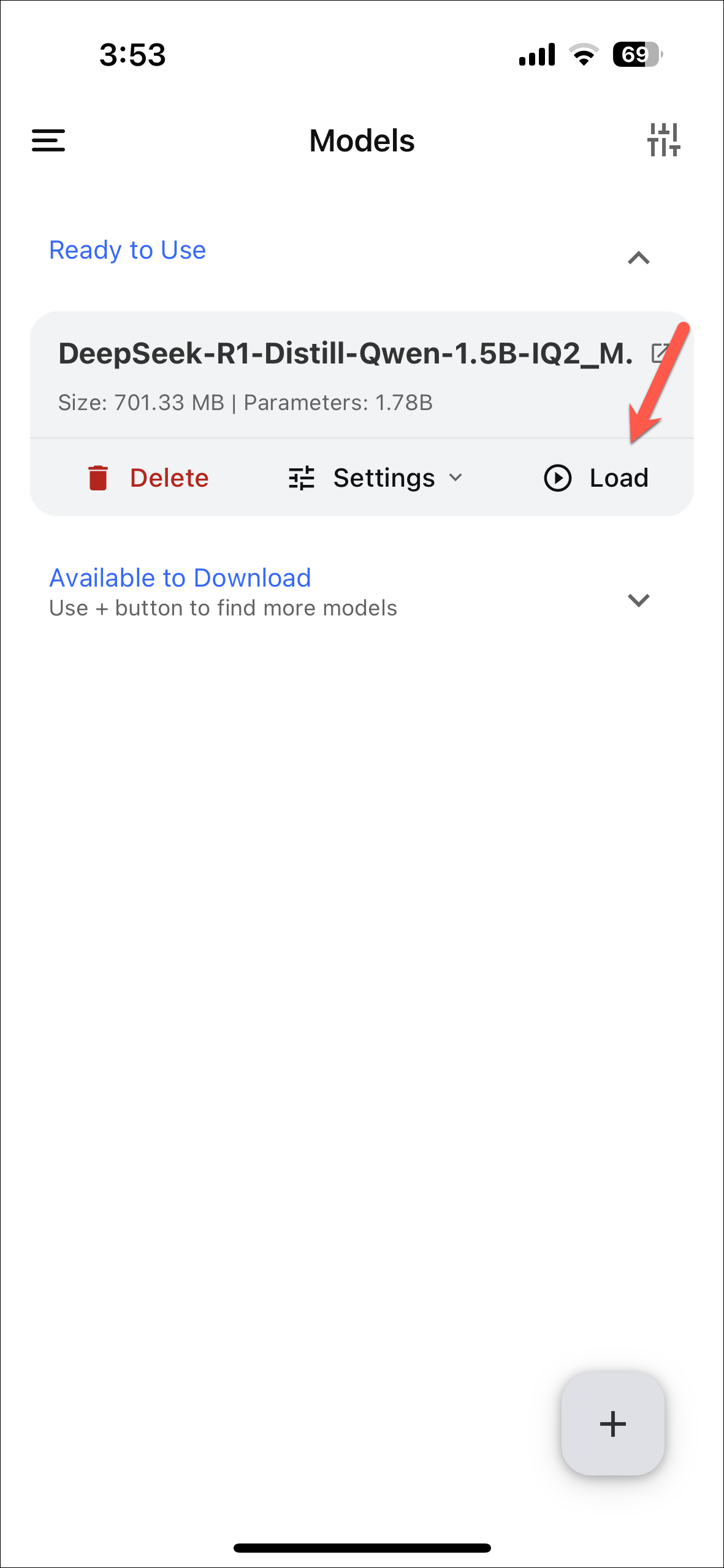 - Once the download is complete, go back to the main screen and tap on the 'Load' icon on the downloaded model.