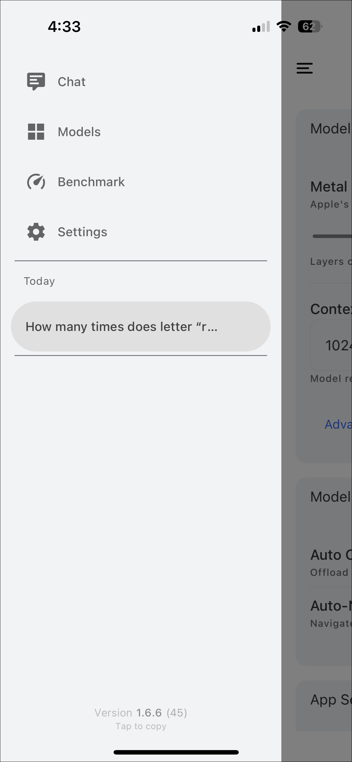 - You can find your chat history or change the model settings from the menu on the left.