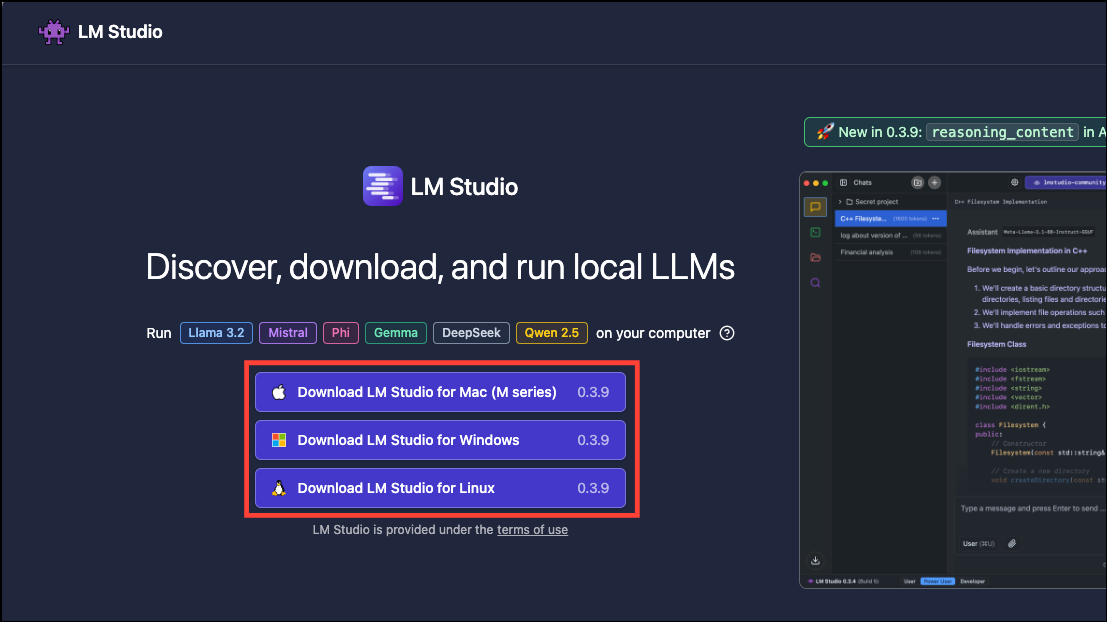 - Now, go to lmstuido.ai and click on the 'Download' button corresponding to your system.