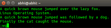 Step 4: To save your changes and exit vim simultaneously, use the command :wq and press Enter.