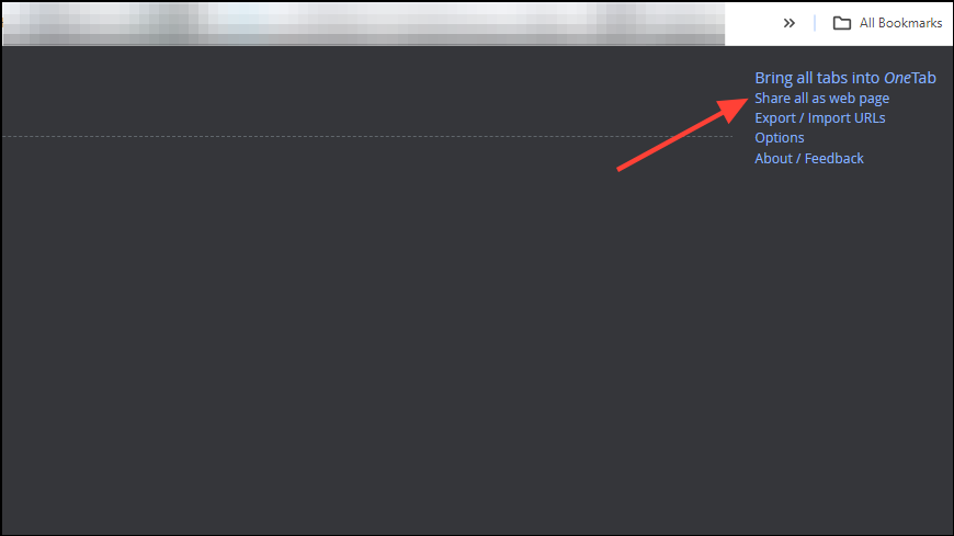 Step 3: Once installed, access OneTab by clicking the extensions icon next to the address bar and selecting OneTab from the list.