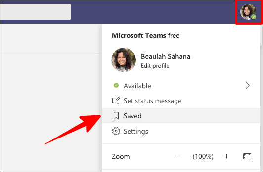 To view the saved message(s). First, click on your user profile icon on the extreme right corner and then select the ‘Saved’ option in the drop-down.