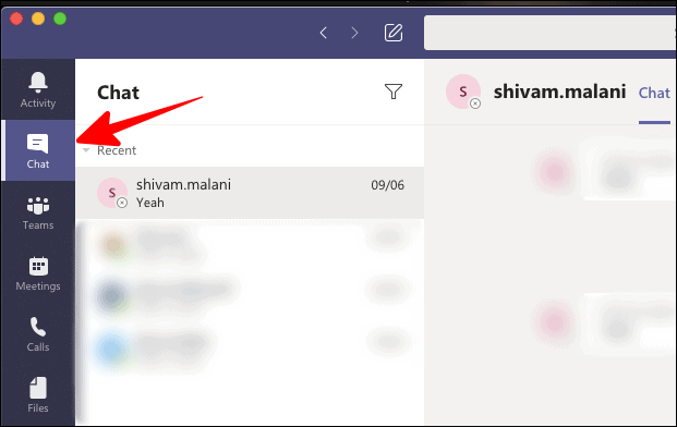 Open your Microsoft Teams app and click on the chat section on the left margin. Then, open a chat from which you wish to save a message.