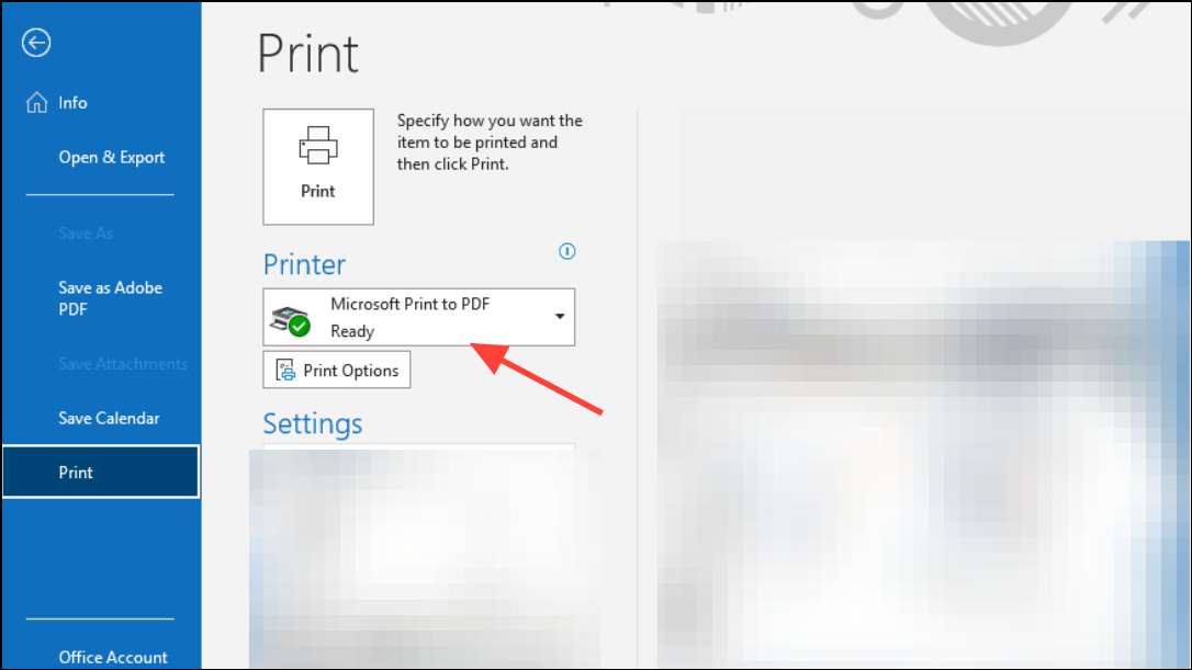 Step 4: To save an email as a PDF, select Print from the More Actions menu. In the Printer dropdown, select Microsoft Print to PDF, then follow the prompts to save the output as a PDF file on your PC.