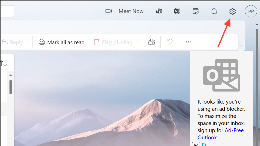 Step 1: Click the settings gear icon in the top right, then select View all Outlook settings.