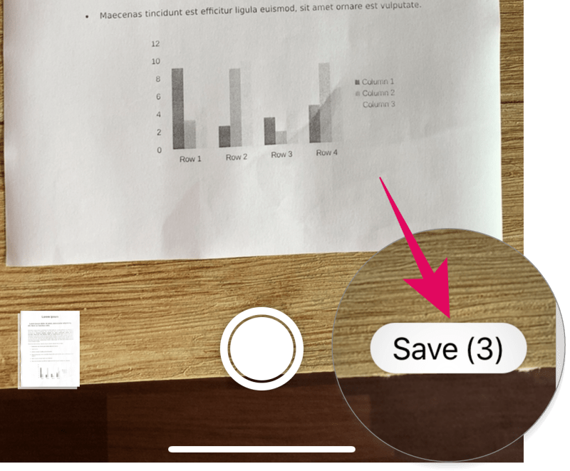 After scanning all documents, and making the necessary adjustments such as filters, crop, and rotate, tap the “Save” button at the bottom left corner of the screen.