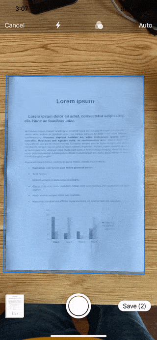 In auto mode, let the borders of a document visible in the scanner’s viewfinder to let your iPhone quickly and properly scan it.