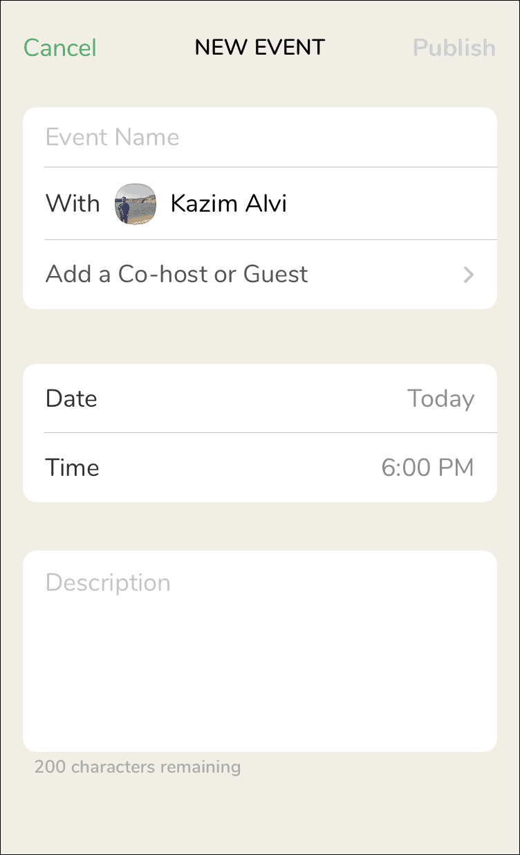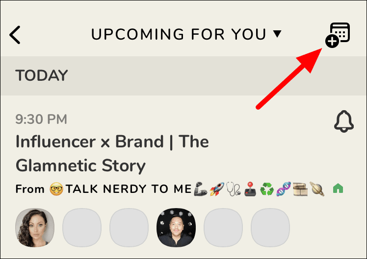 On this screen, you will see all the upcoming events that you can be part of. Now, tap on the ‘+’ sign at the top-right corner.