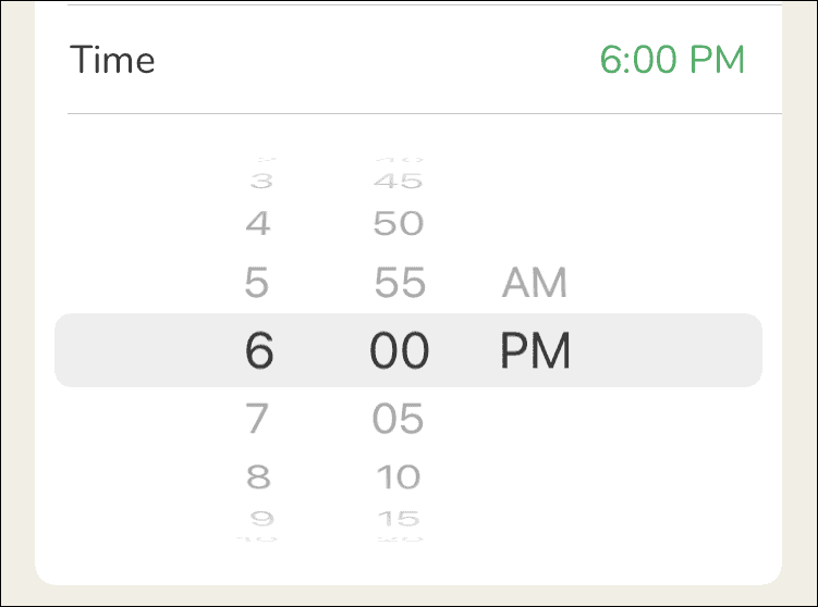 Now, select a time for your event. Tap on ‘Time’, and then set a time by scrolling through the three options.