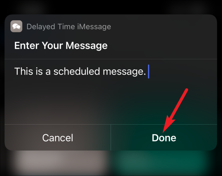 In the next step, enter the message text you want to schedule and tap ‘Done’.
