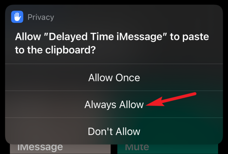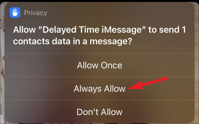 The first time the shortcut runs at the scheduled time, a permission banner will appear on your screen. If you tap ‘Always Allow’, the shortcut will run from this point forward without having to ask for your permission and send the message automatically. Choosing ‘Allow Once’ will bring up the choice again next time you use the shortcut to schedule a message. If you tap ‘Don’t Allow’ or swipe away the banner, the shortcut won’t run.
