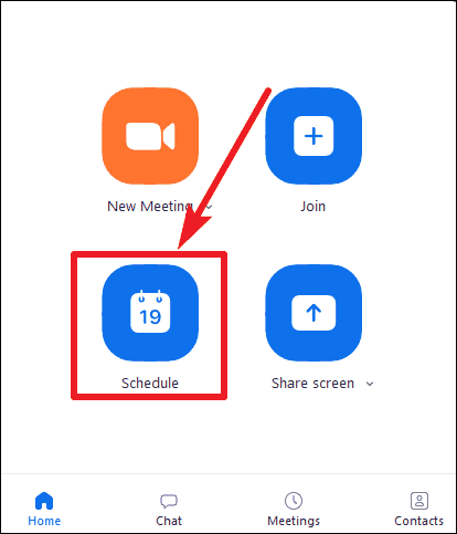 Open the Zoom desktop client on your PC. Then, click on the ‘Schedule’ option on the Home Screen of the Zoom App.
