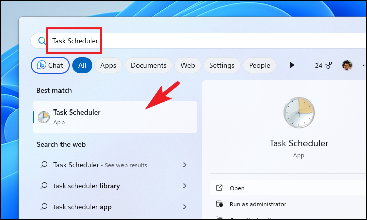 Step 1: Open the Start menu and type Task Scheduler in the search bar. Click on the 'Task Scheduler' app from the search results.
