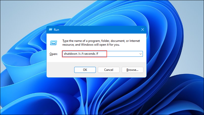 Win + Rshortcut to open the Run dialog box and typeshutdown /s /t seconds /finside it when it appears.