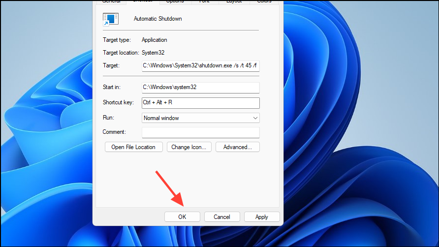 - Click on the 'Apply' button and then 'OK' to close the dialog box. Now, you can press the shortcut keys to shut down your PC automatically.