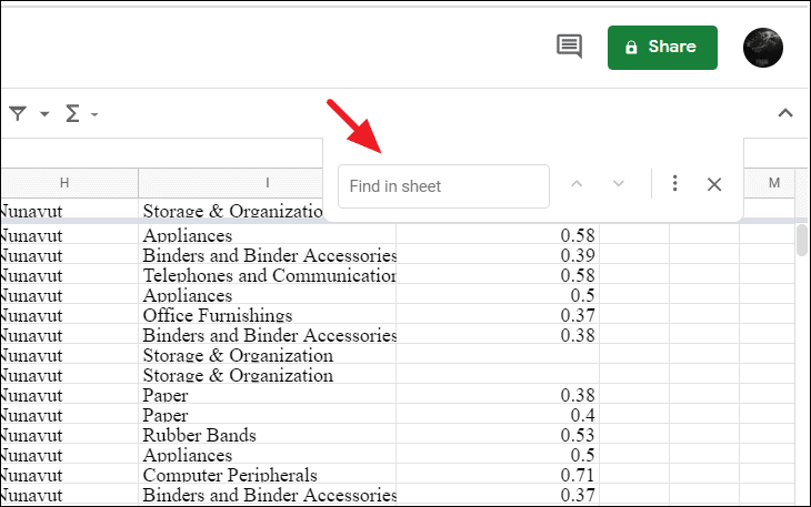 Step 3: In the Find in sheet box that appears at the top-right corner, type the word or phrase you're looking for.