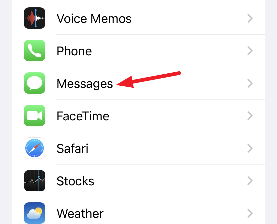 Step 2: Scroll down and tap on Messages.