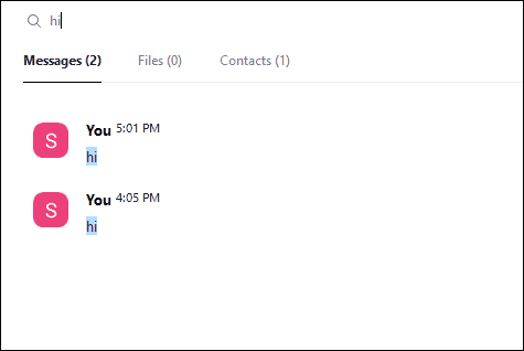 The search results would return everything that matches your query neatly categorized into different piles of ‘Messages’, ‘Files’, and ‘Contacts’ so you can easily navigate the search results and find what you were looking for.