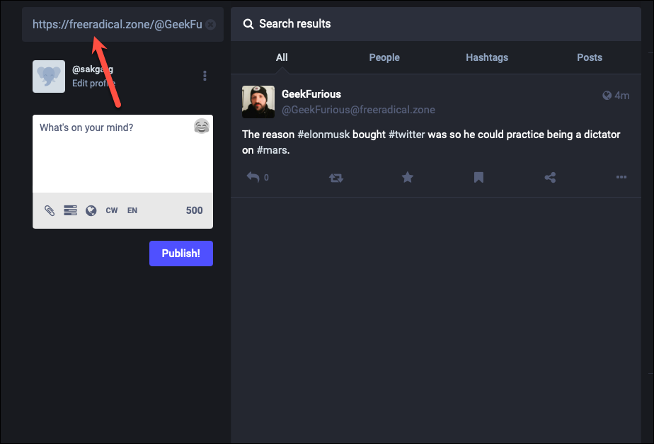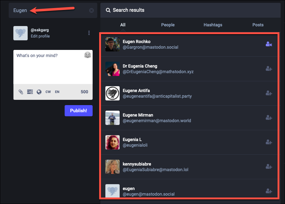 Now, to search for a person on Mastodon, you can either search using their username or display name.