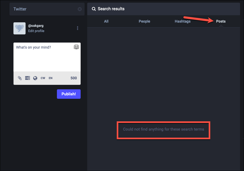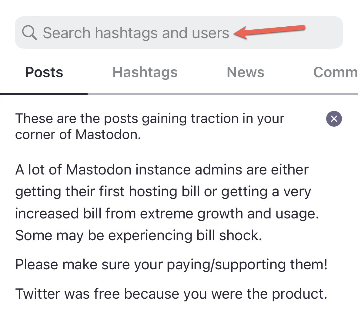 Now, if you want to search for posts on Mastodon, you can only search for them using Hashtags.