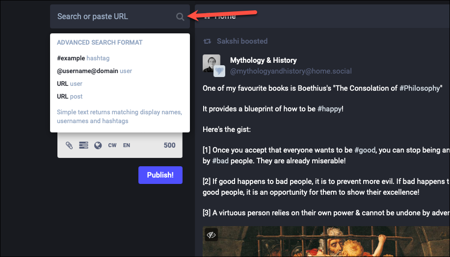 You can also enter the URL for a post in the search field if you have it to search for it in the Mastodon network.