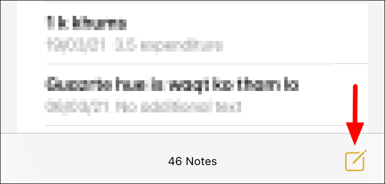 Once you have opened the ‘Notes’ app, tap on the ‘New’ icon at the bottom-right corner of the screen to create a new note.
