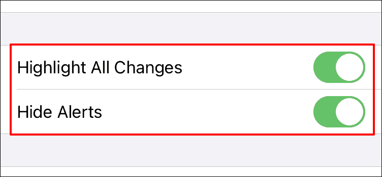 You will find two customization options under the list of people with access to the note. Enable the toggle switches next to both ‘Highlight All Changes’ and ‘Hide Alert’s.