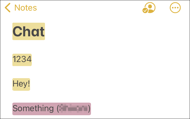 To end a chat in the Notes app, you just need to stop sharing the note with other people. To do so, tap on the ‘Shared’ icon at the top to view the various users with access to the note.