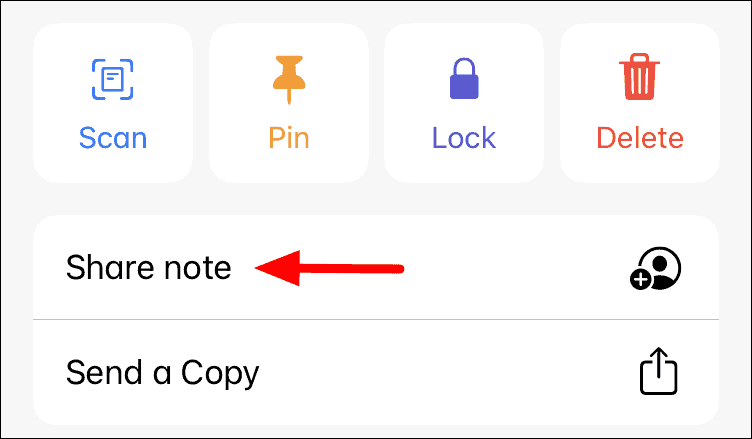 A box will now pop up at the bottom of the screen with multiple options. Tap on the ‘Share note’ option in the box.