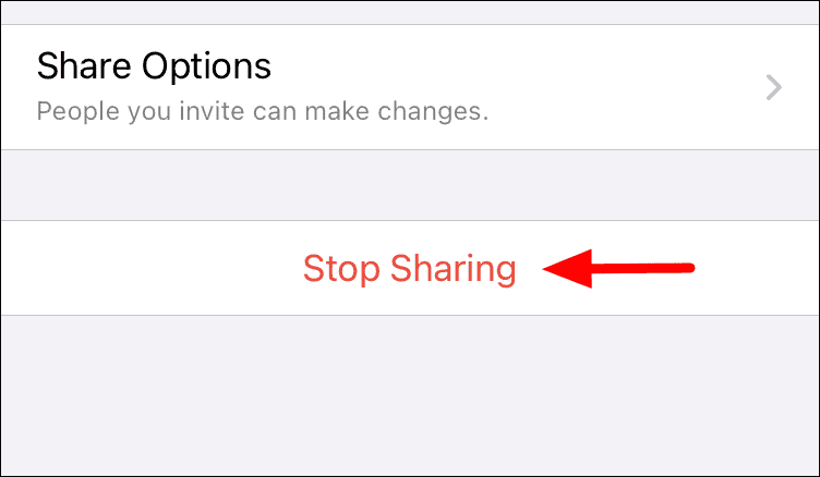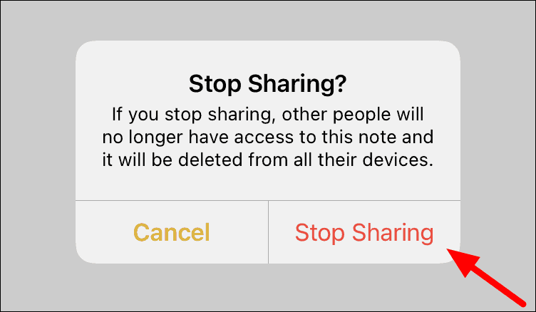 On this page, you will find the list of users with access to this note at the top. Also, you should have the ‘Stop Sharing’ option at the bottom, tap on it.